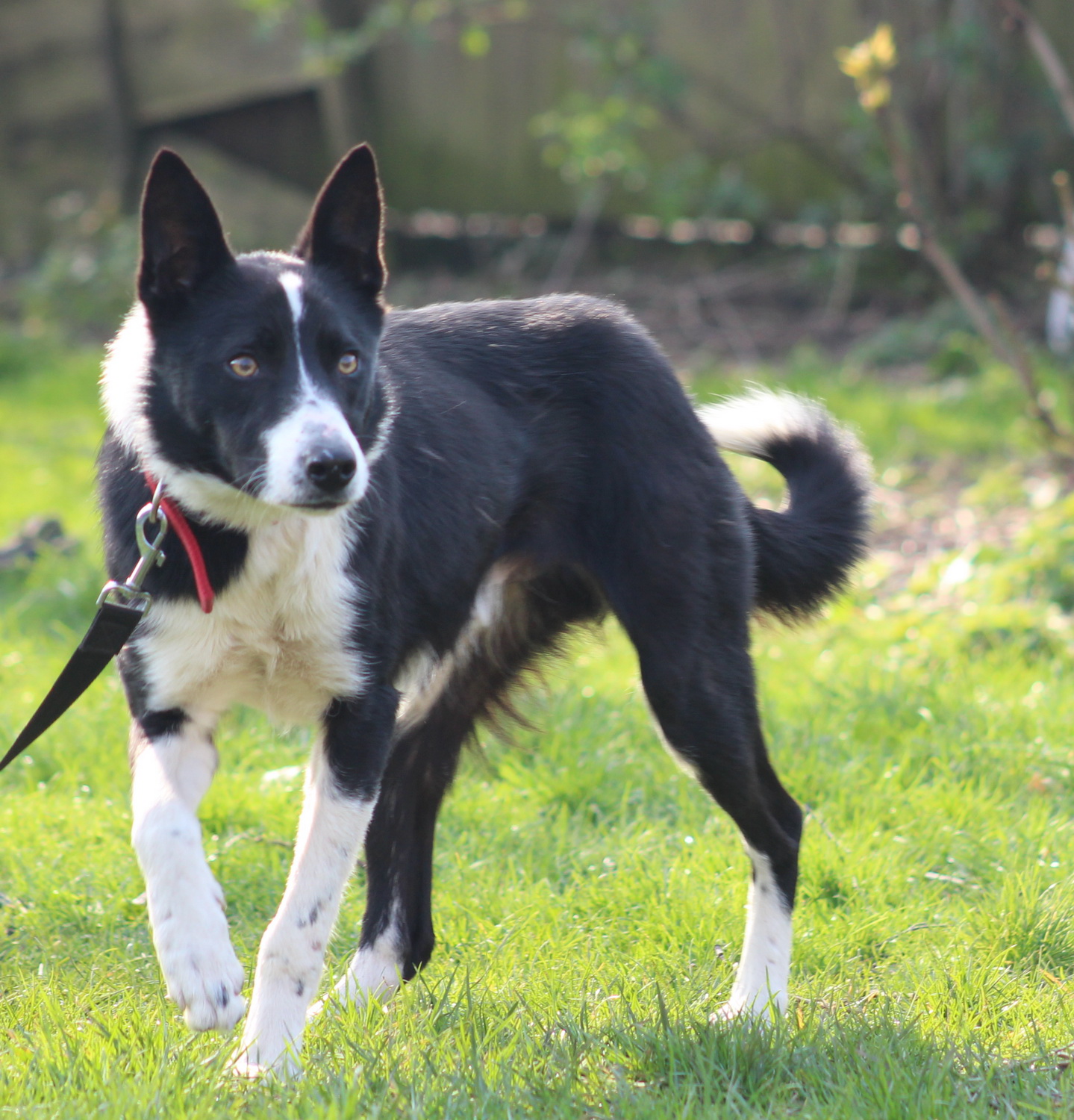 Jim is a lovable boy who loves cuddles and attention. He has come from a farm so wouldn’t settle in a busy built up area. He full of life and full of fun, good on a lead, good with other dogs, good at the vets. He is due to be neutered at the end of June by which time he will be ready for his new home. Jim will need someone who is prepared to keep working with him and to keep him on a long for quite some time while working on his recall, especially if walking near sheep or cattle. While he is good with other dogs he would be better as the only dog as he still has a lot to learn, he is approximately 3 years old but still thinks he’s a puppy, so he will be better with no small children. Jim may not be the best dog to have if there are cats in the home