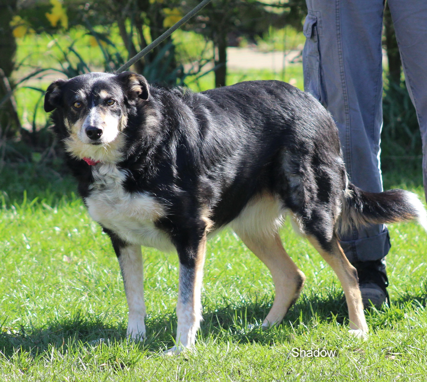 Roy is a nervous boy but is currently coming out of his shell. He’s wary of strangers so the adopter will have to realise that it may take a longer length of time to create a bond, but with the time spent with him he will get there. Roy is good on a lead but not too keen on cars so he couldn’t go anyway busy. He would be best suited to a quiet home with no children and away from busy roads. He will tolerate other other dogs when out walking but really needs to be in a one dog home for the time being. Roy is about five years old  and he is ready to go now to someone who is prepared to make several visits for him to get to know them, and to someone who understands the patience needed with a dog that has been shut away during his young life.  He is such a lovely boy he does deserve to have a special someone in his life, but be warned he can sulk, after a trip to the vets (where he was well behaved) and being neutered he was still sulking several days later! If you think you could be the person to give this special boy a home please contact us and we can arrange a visit for you to come and spend some time with him.